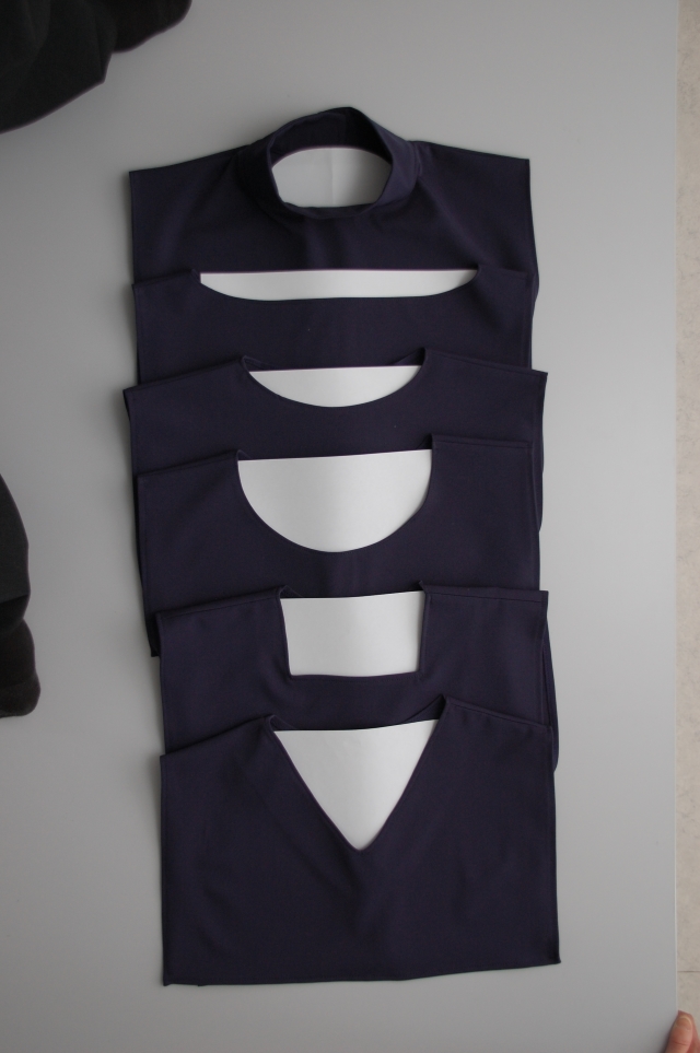 6-teiliges Kragenset (V-Ausschnitt, Eckiger-Ausschnitt, Stehkragen, Bateau-Ausschnitt, Rund-Ausschnitt halsnah, Rund-Ausschnitt halsfern)